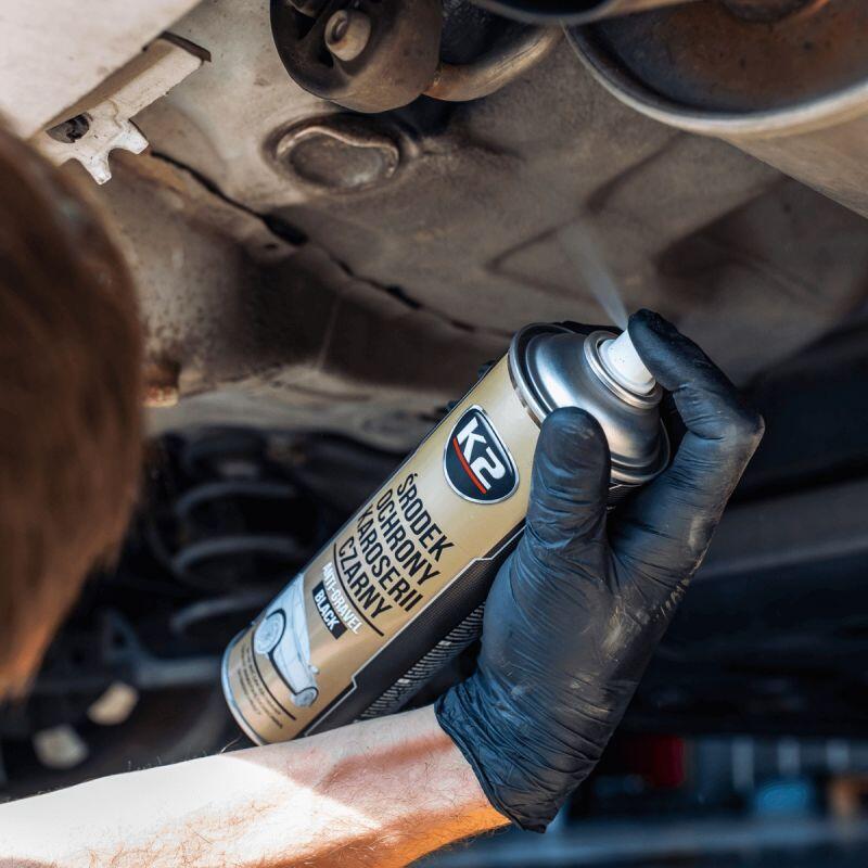 Spray insonorizant-antifon negru 500ml, K2 L310. Un agent cu uscare rapida pe baza de rasini sintetice, creand un invelis flexibil care protejeaza corpul impotriva actiunii agentilor mecanici, ruginii si impotriva actiunii apei